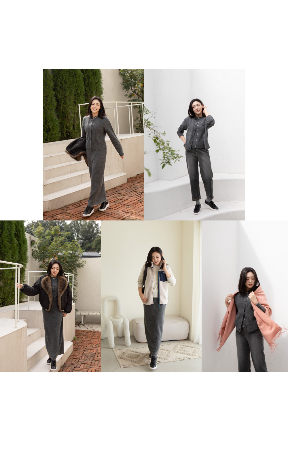 차분한 미디엄 그레이 톤은 겨울철 아우터들과의