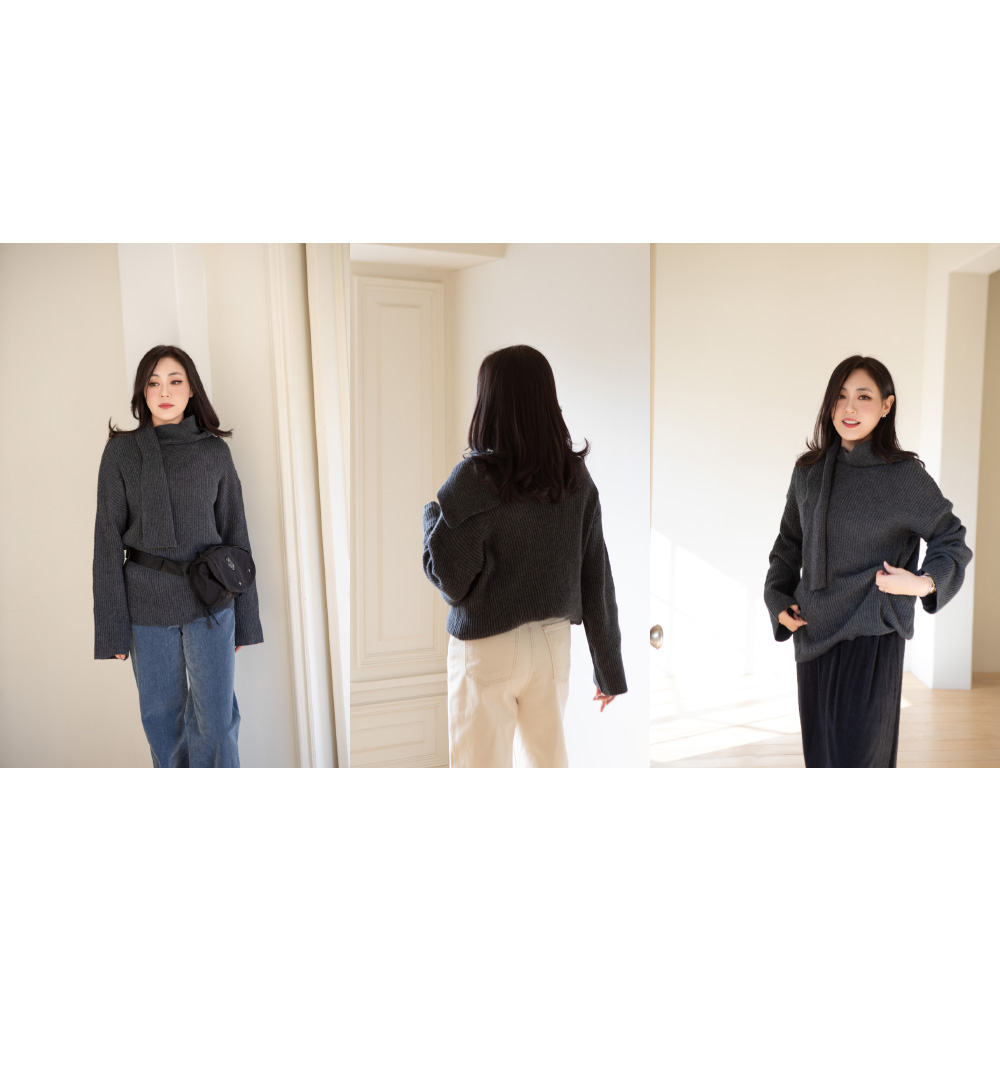 따로 달린 머플러가 아니라, 몸판과 연결된 니트라서