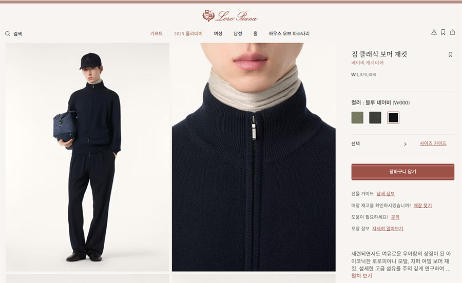 핏과 라인은 “로로피아나 베이비 캐시미어 투웨이 집업”의